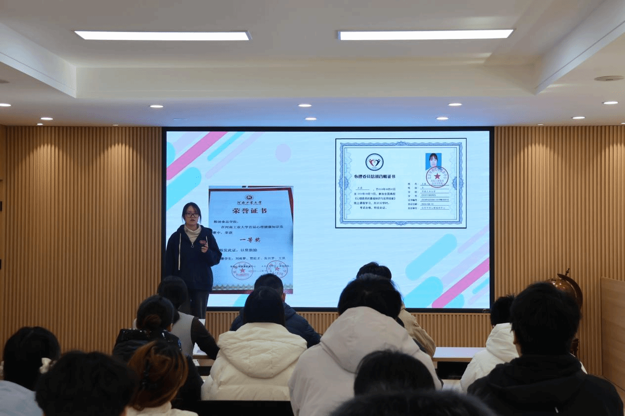 汇报环节中,各班级心理委员依次上台,结合班级实际情况展开详细汇报。大家围绕心理健康知识宣传、日常心理动态摸排、心理疏导、主题班会与团体活动开展、心理危机干预协助等核心工作,全面梳理了本年度的履职情况。有的分享了通过“心理沙龙”“情绪树洞”等特色活动缓解同学学业压力的经验;有的介绍了建立班级心理互助小组、搭建线上沟通渠道的创新做法;有的则针对工作中存在的不足提出优化活动形式、深化与辅导员联动等改进思路,充分展现了心理委员们的责任担当与务实作风。