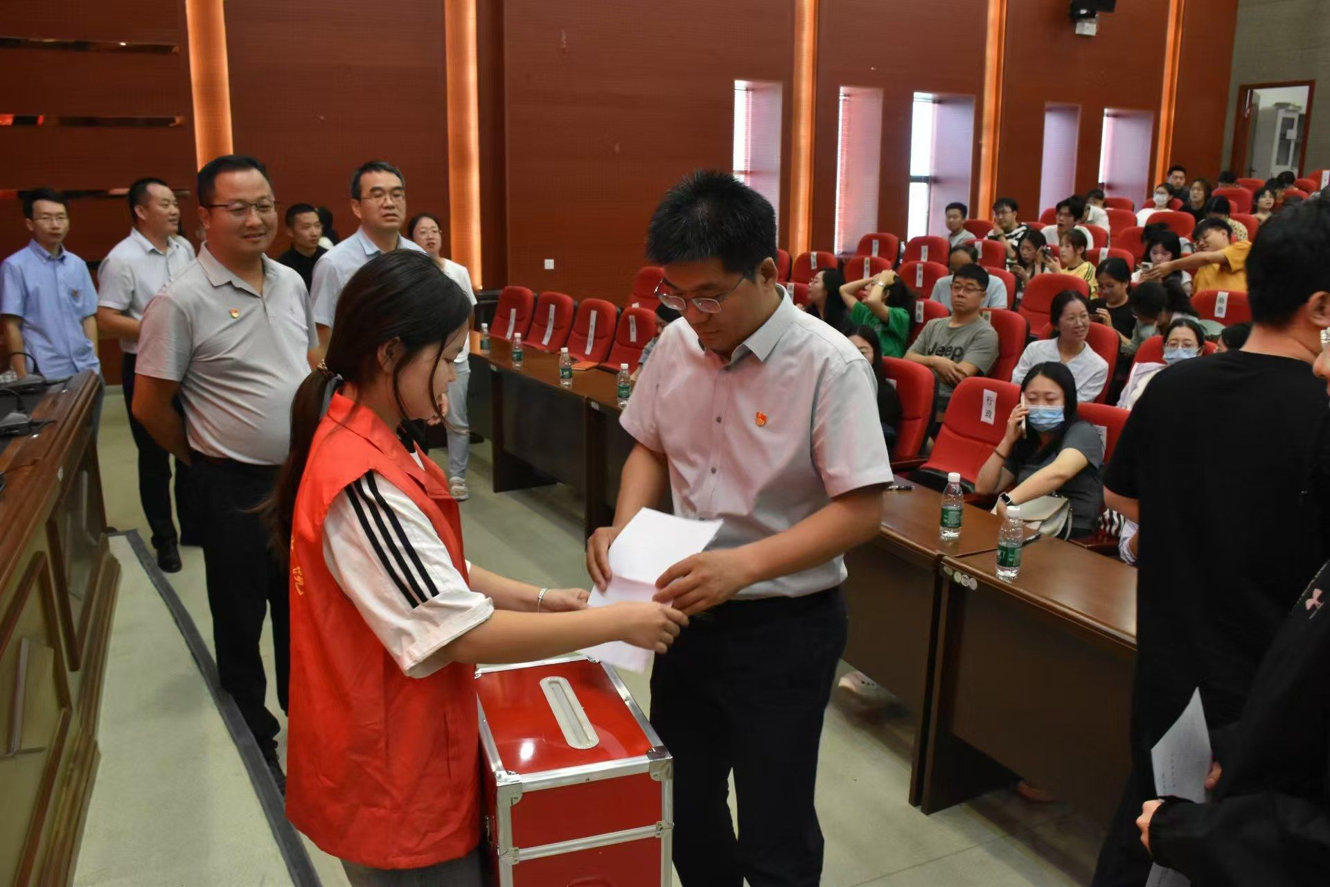 党委出席学校第四次党代会代表选举办法(草案)》,审议通过了监票人、计票人名单。全体参会正式党员以无记名投票、差额选举方式,选举产生学院7名新一届党委委员、3名纪委委员和11名学校第四次党代会代表。